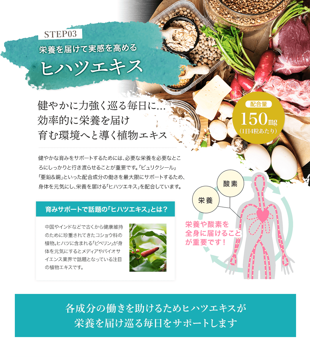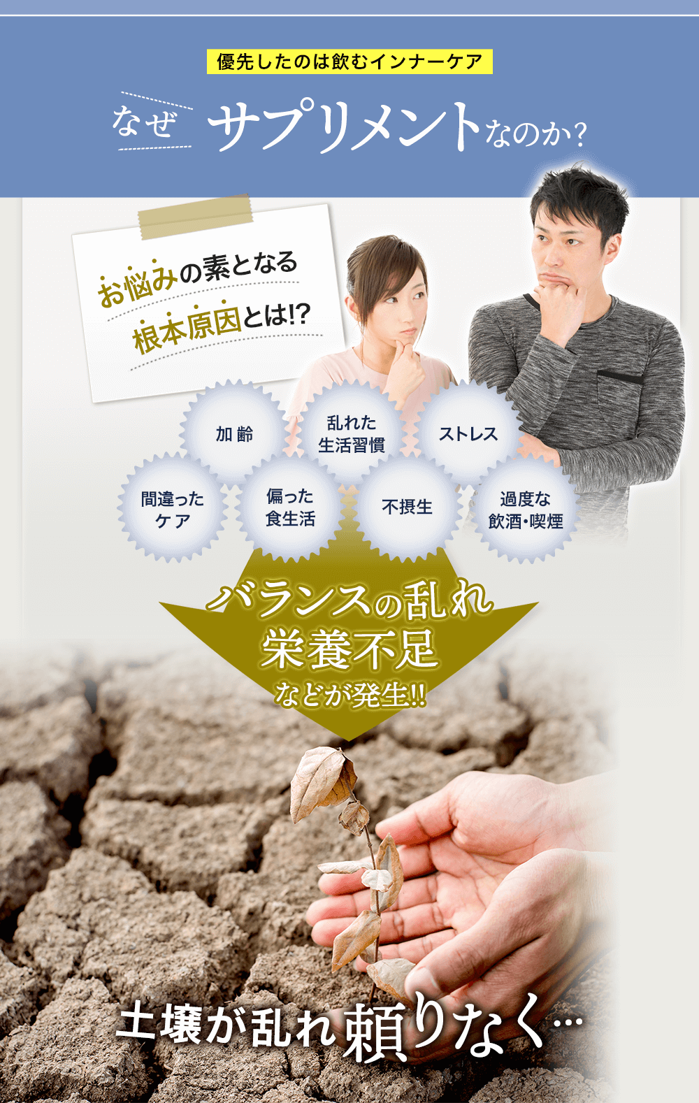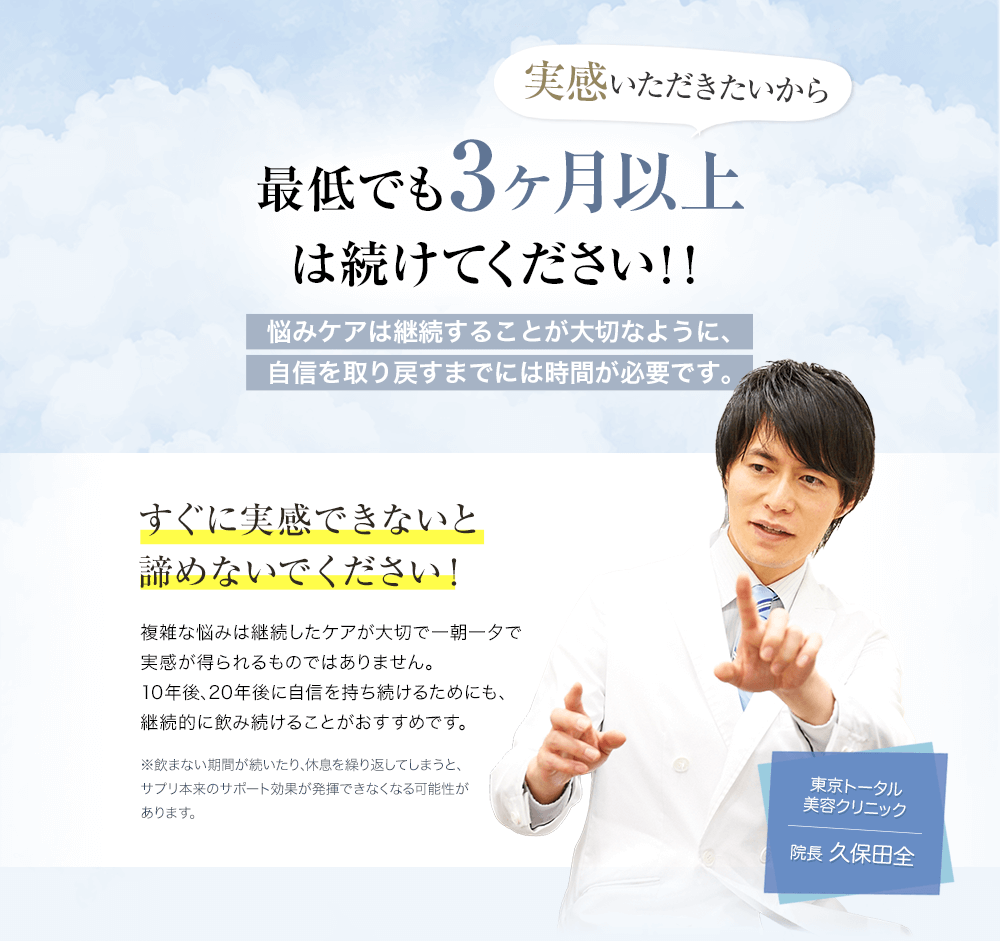 また期間については、体質や体調、食生活、生活環境などにより個人差がありますので一概に言えませんが、まずは3か月~半年程度を目安に続けていただくことをおすすめします。