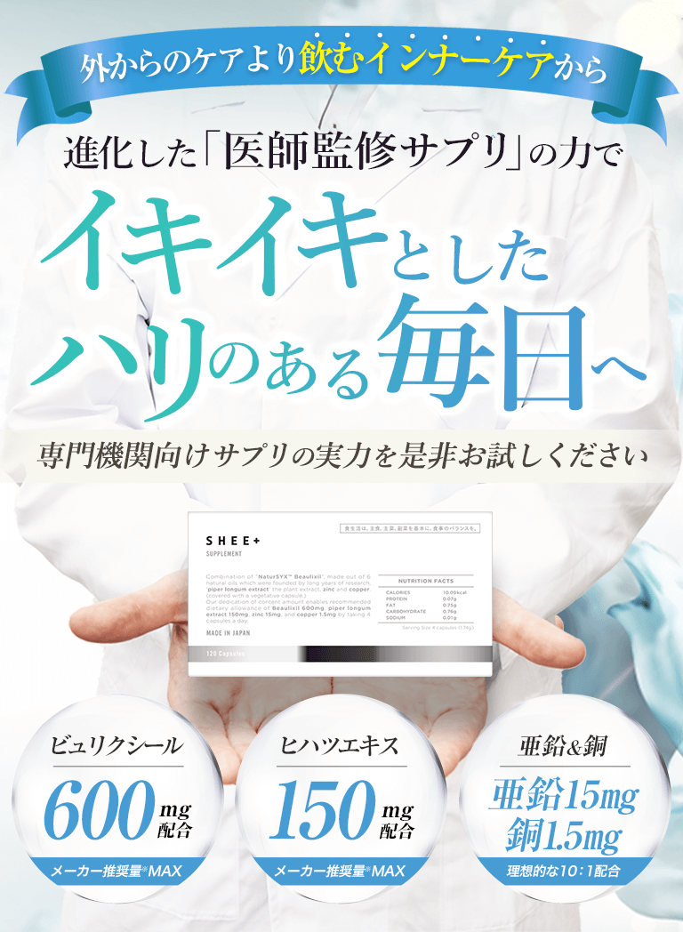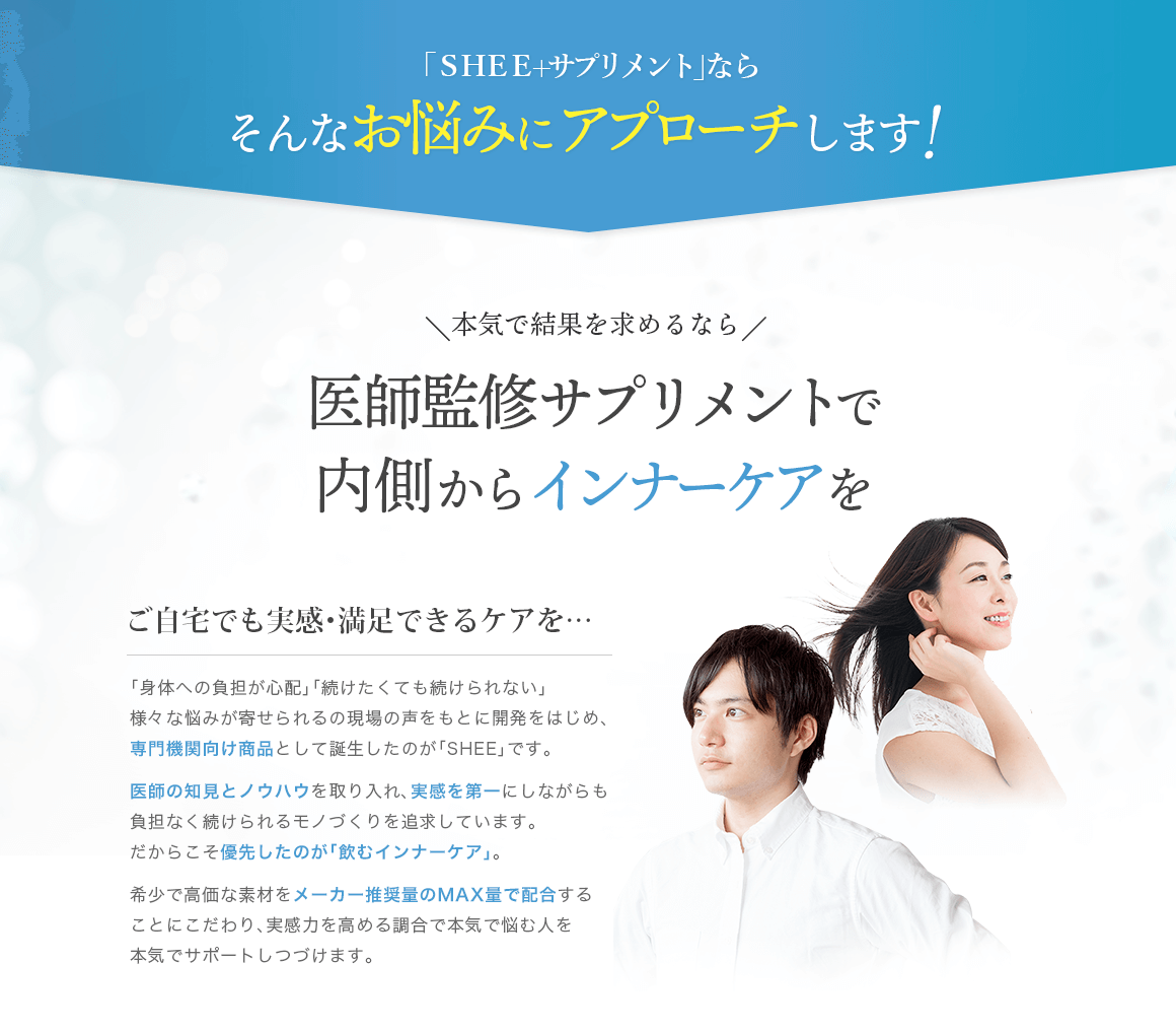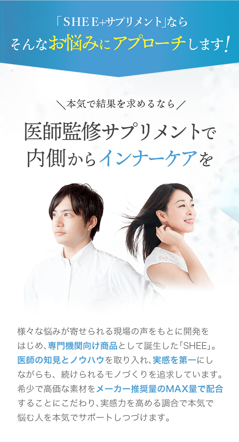 SHEEサプリメントは専門機関でもお取扱いいただいている医師監修のサプリメントです。